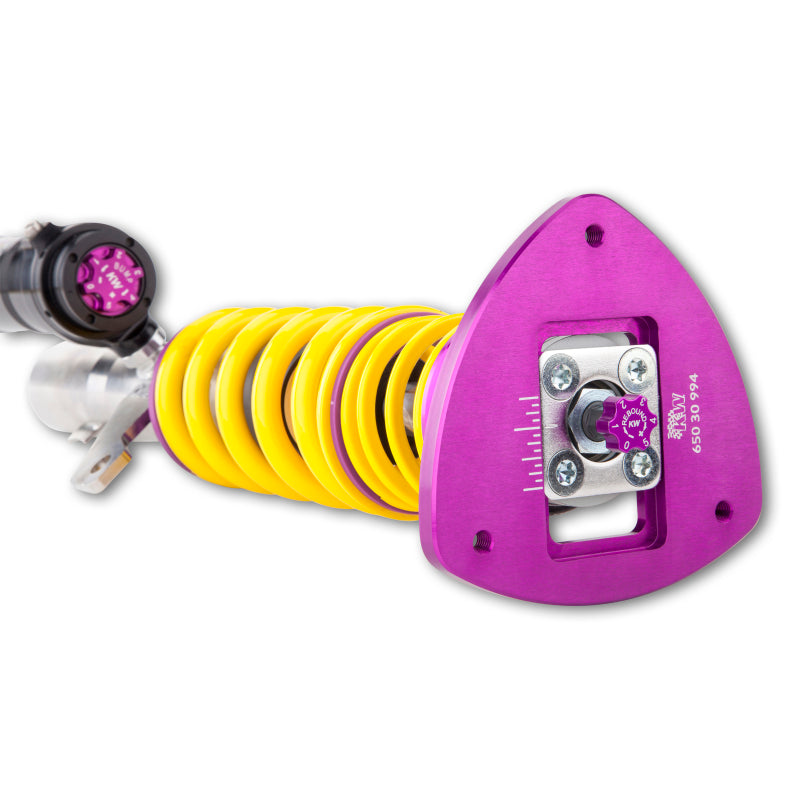 Designed to maximize the performance on vehicles with DOT-R and other ultra high-performance tire setups. KW V3 Clubsport coilovers are the ideal choice for double-duty street cars, use at HPDE's(high performance drivers education), time attack or time trials, and club level racing. The Clubsport setup was specially designed on the Nordschleife and the continuous adjustable ride height allows for fine corner weight or making setup changes. The TVR-A and TVC-A valve technology -provide an unmatched level of separately adjustable damping for the rebound and compression enabling a customized set up appropriate for the vehicle's modifications such as weight, tire characteristics, and other various conditions. The KW V3 Clubsport INOX-LINE coilover kit is the ideal tool for performance-oriented drivers and experienced tuning enthusiasts who place a strong emphasis on the overall performance of their suspension. The KW V3 Clubsport features patented TVR-A and TVC-A technology -hat provides separately adjustable rebound and compression damping. The extensive Adjustment -angle of the independently configurable rebound and compression make it easy to directly influence the steering behavior, directional stability, grip and handling characteristics for confident and repeatable results at the limit of driving dynamics.