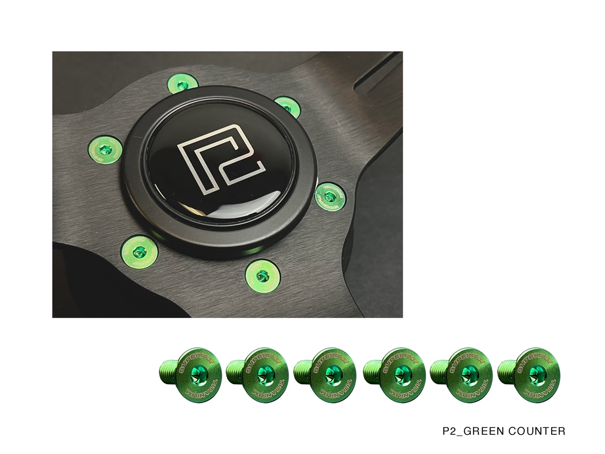 P2M SUPERFLY TITANIUM STEERING WHEEL COUNTER SUNK BOLT SET : GREEN