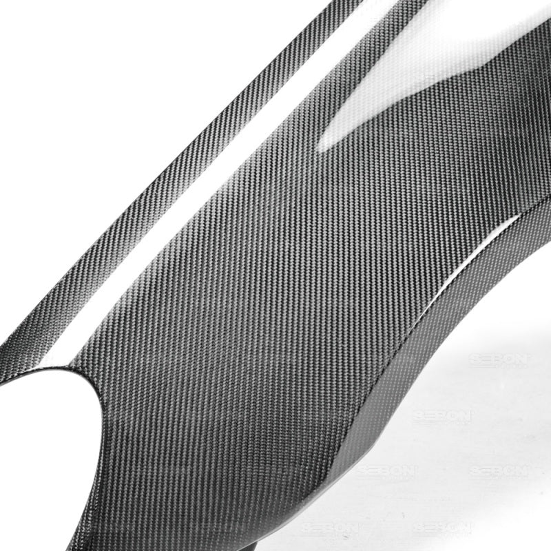 Seibon Carbon components are carefully hand-crafted using only the finest materials. Our production team offers superior craftsmanship with over 20 years of experience working with carbon fiber. Every component is constructed with a consistent weave pattern. Our production processes allows exceptional carbon/resin ratio, creating high product stiffness that also leads to extra strength. For a stunning finish, our products are coated with a glossy clear coat that does not chip or flake. We meticulously inspect all of our components and stand firmly behind our products so that you can enjoy peace of mind with every genuine Seibon Carbon product. Creating performance-oriented products that help shed unnecessary weight without sacrificing style is our specialty. Race after race, Seibon products have proven to be as strong as the driver's ambition to win, thus making Seibon Carbon the preferred brand among professional drivers.