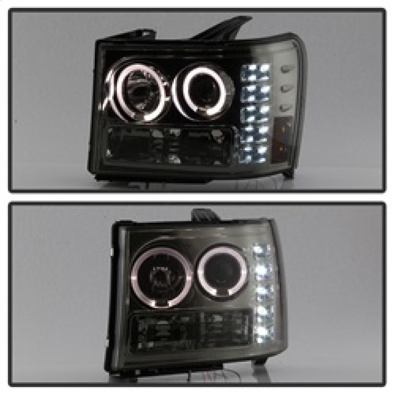 Spyder GMC Sierra 1500/2500/3500 07-13 Projector Headlights LED Halo- LED Smoke PRO-YD-GS07-HL-SM