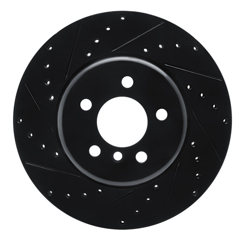 R1 10-19 BMW 535I GT Rear Left Drilled & Slotted Black Brake Rotor