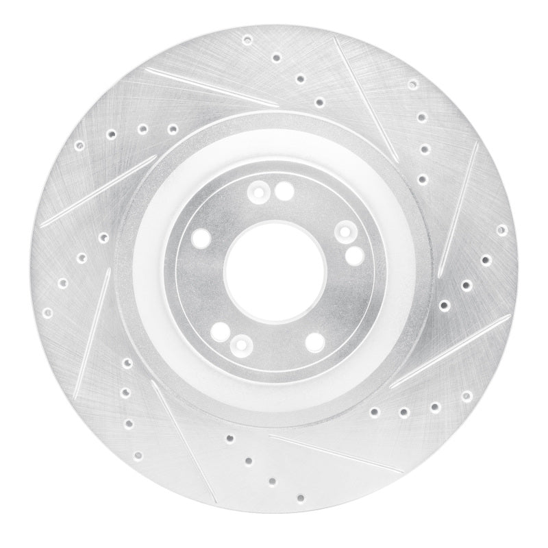 R1 12-17 Genesis G80 Front Right Drilled & Slotted Silver Brake Rotor
