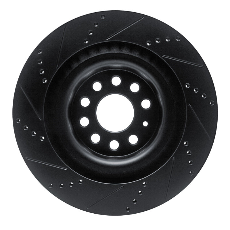R1 12-21 Tesla Model S Rear Right Drilled & Slotted Black Brake Rotor