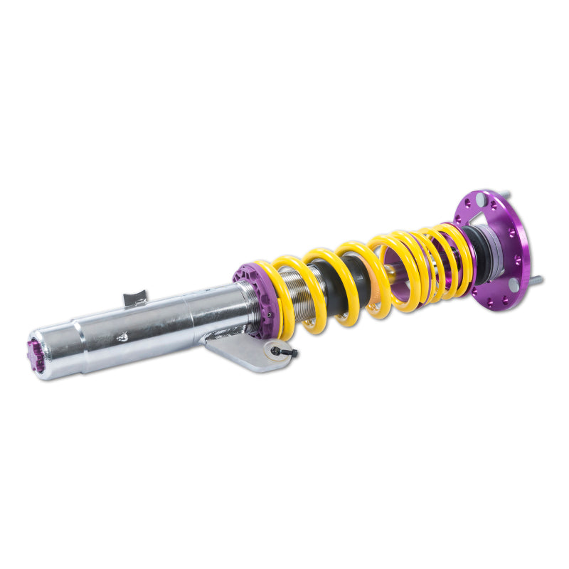 Designed to maximize the performance on vehicles with DOT-R and other ultra high-performance tire setups. KW V3 Clubsport coilovers are the ideal choice for double-duty street cars, use at HPDE's(high performance drivers education), time attack or time trials, and club level racing. The Clubsport setup was specially designed on the Nordschleife and the continuous adjustable ride height allows for fine corner weight or making setup changes. The TVR-A and TVC-A valve technology -provide an unmatched level of separately adjustable damping for the rebound and compression enabling a customized set up appropriate for the vehicle's modifications such as weight, tire characteristics, and other various conditions. The KW V3 Clubsport INOX-LINE coilover kit is the ideal tool for performance-oriented drivers and experienced tuning enthusiasts who place a strong emphasis on the overall performance of their suspension. The KW V3 Clubsport features patented TVR-A and TVC-A technology -hat provides separately adjustable rebound and compression damping. The extensive Adjustment -angle of the independently configurable rebound and compression make it easy to directly influence the steering behavior, directional stability, grip and handling characteristics for confident and repeatable results at the limit of driving dynamics.