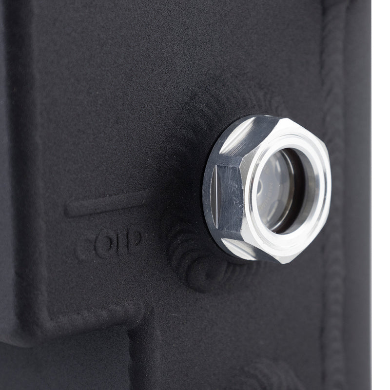 Introducing the Mishimoto Coolant Expansion Tank for the 2023+ Toyota GR Corolla. This direct-fit solution boasts all-aluminum construction that won’t yellow, crack, or leak with repeated heat cycles like the stock plastic tank will. Internal baffles prevent air entry during aggressive driving, while a 40-percent increase in coolant capacity improves heat dissipation. The easy-access bleed port simplifies air bleeding, saving you time and frustration. A high-visibility sight glass and stamped cold-fill line allow quick coolant level checks. Choose from micro-wrinkle red or black finishes to match your style. Backed by the Mishimoto Lifetime Warranty, this expansion tank combines performance and aesthetics for a confident driving experience as long as you own your GR Corolla.