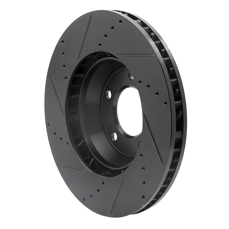 R1 03-15 Audi Q7 Left Front Drilled & Slotted Black Brake Rotor