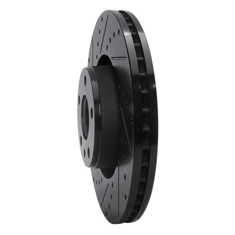 R1 05-11 Audi A6 Quattro Front Left Drilled & Slotted Black Brake Rotor