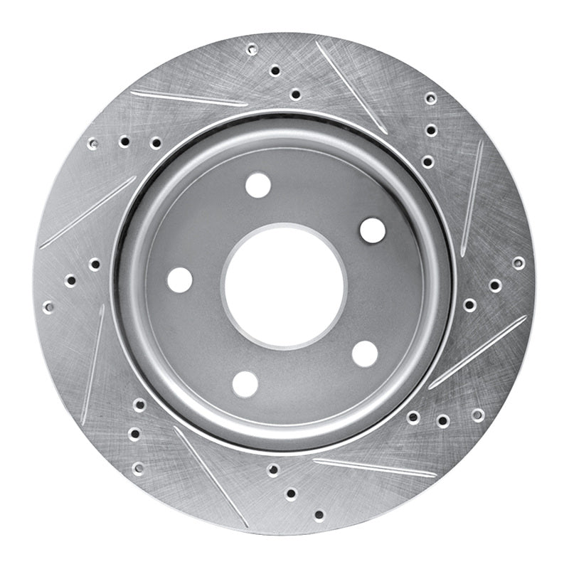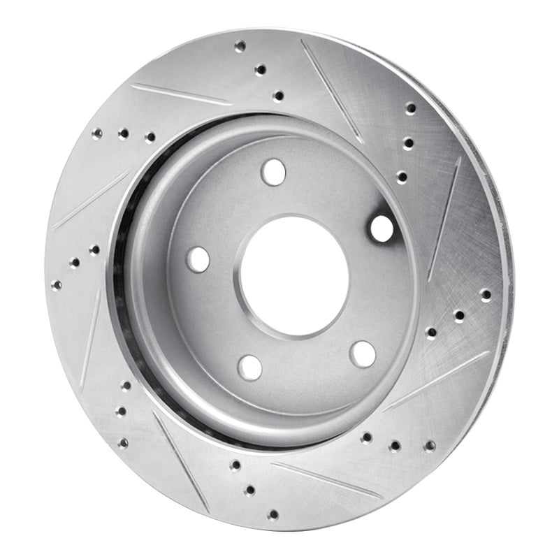 R1 05-11 Dodge Dakota 4WD Front Left Drilled & Slotted Silver Brake Rotor