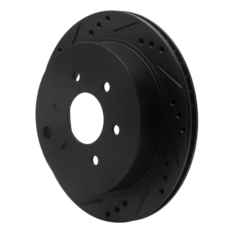 R1 05-25 Nissan Frontier Rear Left Drilled & Slotted Black Brake Rotor