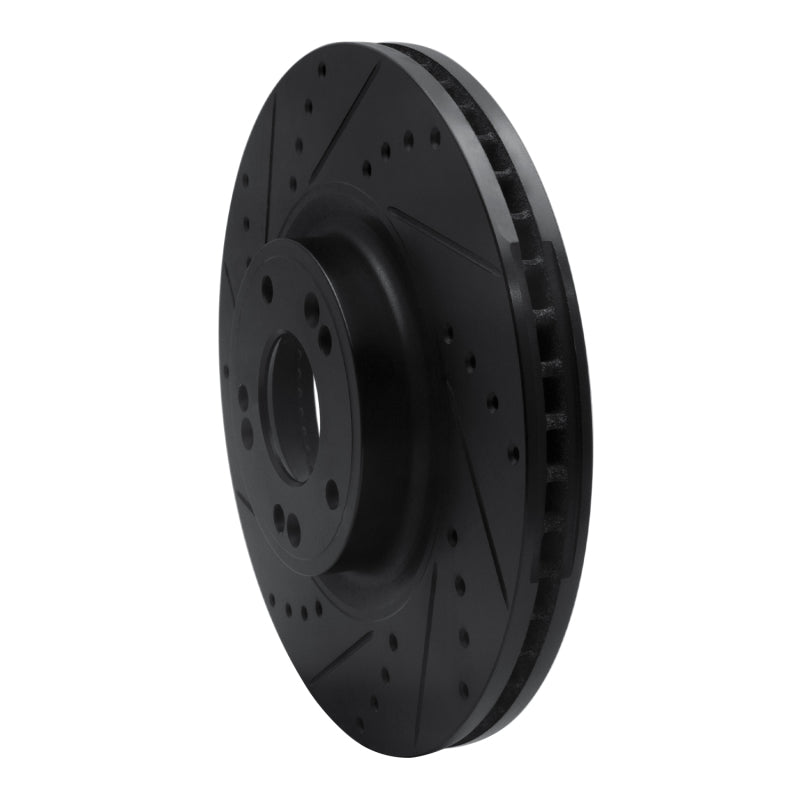 R1 09-14 Hyundai Genesis Sedan Front Left Drilled & Slotted Black Brake Rotor