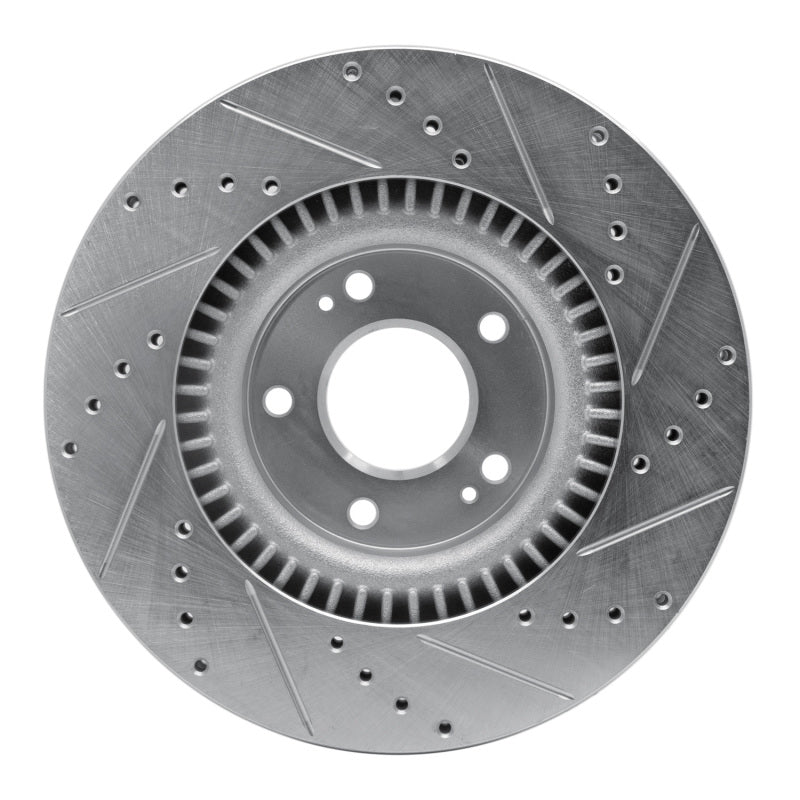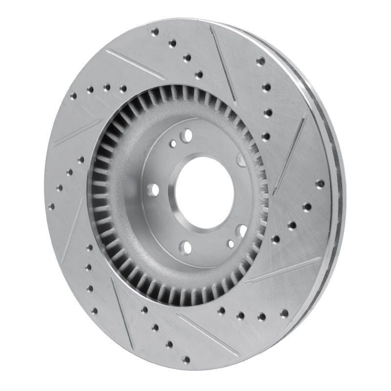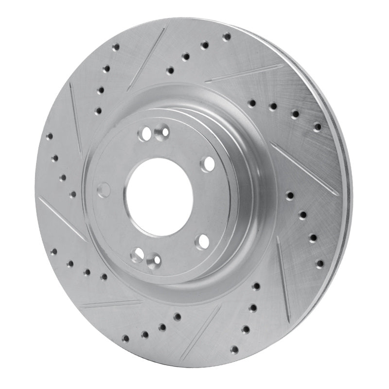 R1 10-16 Hyundai Genesis Coupe Front Left Drilled & Slotted Silver Brake Rotor