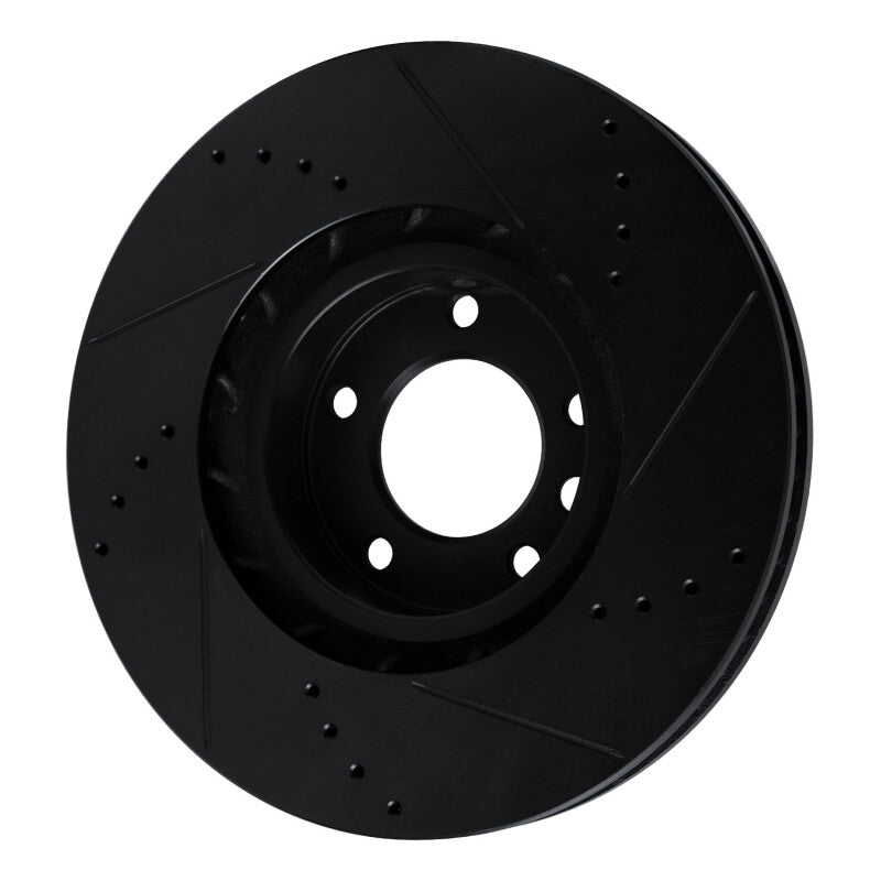 R1 11-18 Porsche Cayenne Right Front Drilled & Slotted Black Brake Rotor