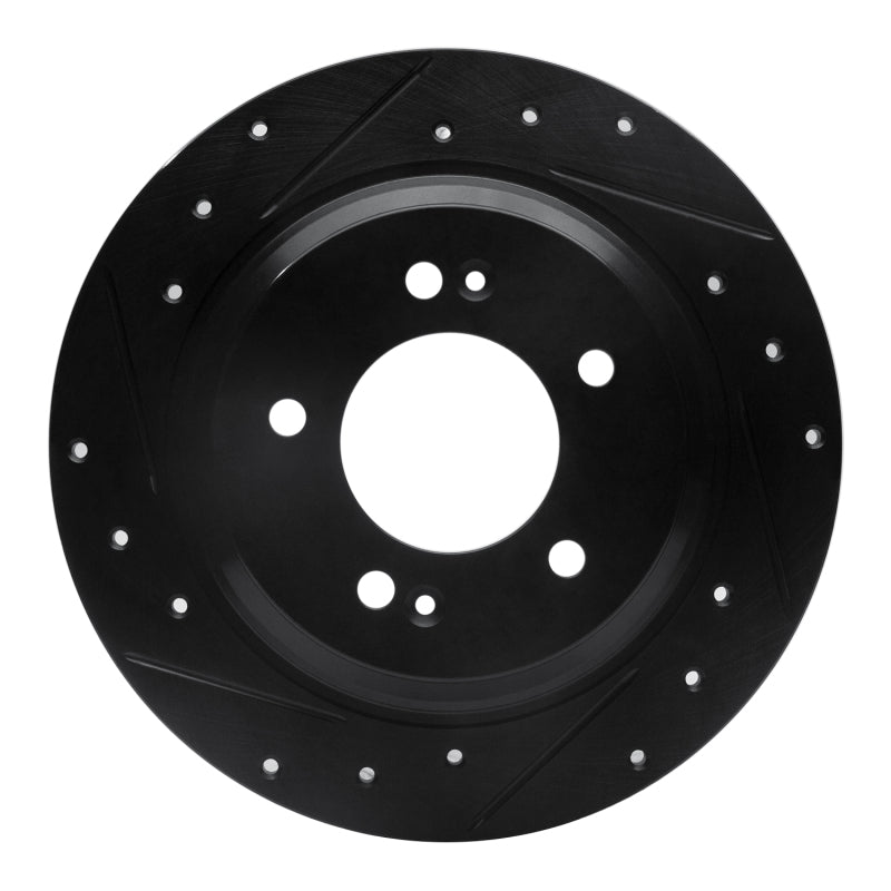 R1 13-25 Hyundai Kona Rear Left Drilled & Slotted Black Brake Rotor