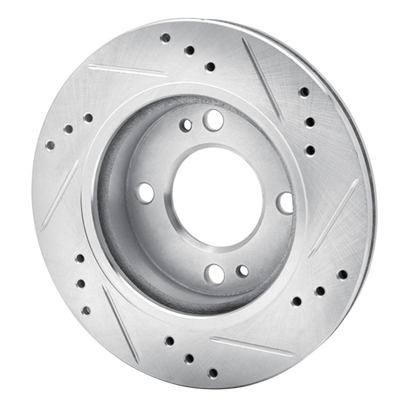 R1 14-15 Mitsubishi Mirage Front Left Drilled & Slotted Silver Brake Rotor