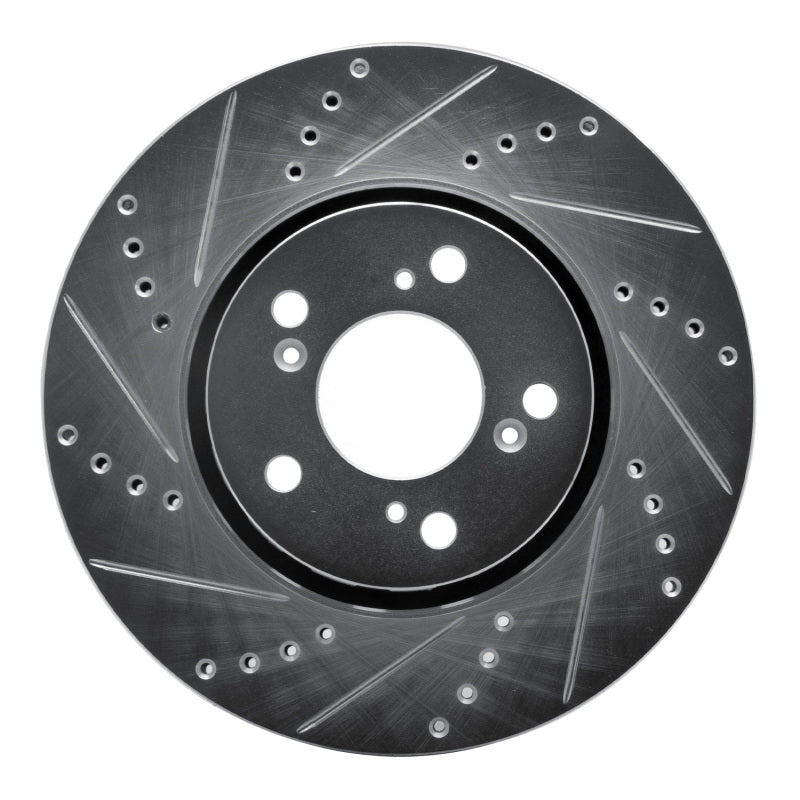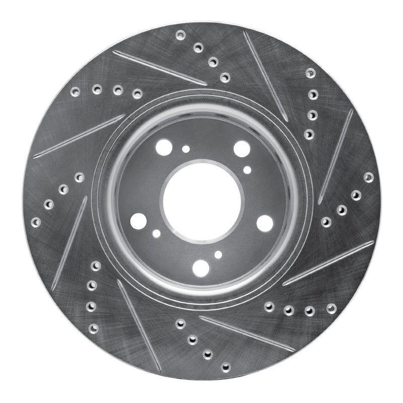 R1 14-20 Acura RLX Front Left Drilled & Slotted Silver Brake Rotor