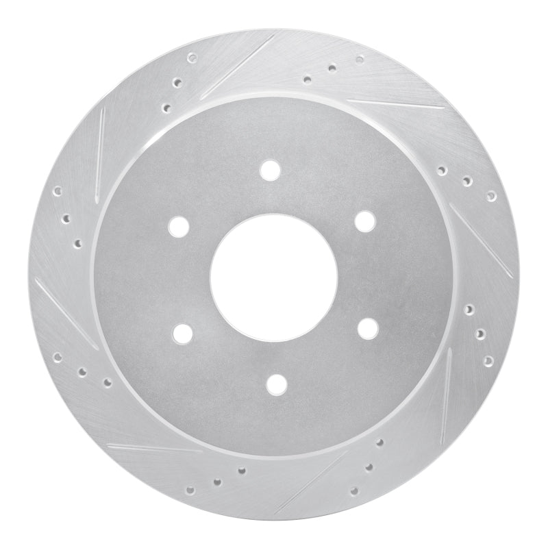 R1 17-24 Nissan Titan Rear Left Drilled & Slotted Silver Brake Rotor