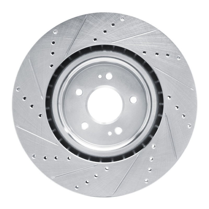 R1 18-22 Genesis G70 Front Right Drilled & Slotted Silver Brake Rotor