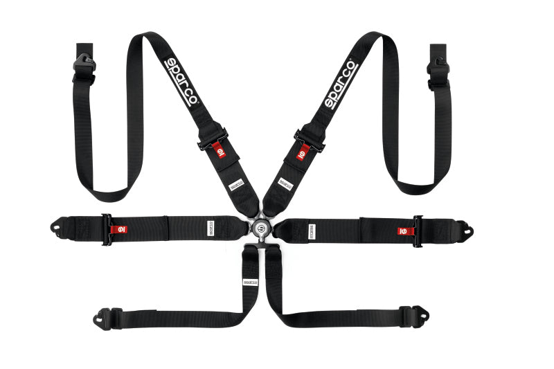 Perfect For: Professional racing and track day applications requiring Sparco 6-point FIA-approved racing harness with HANS device compatibility and steel hardware.